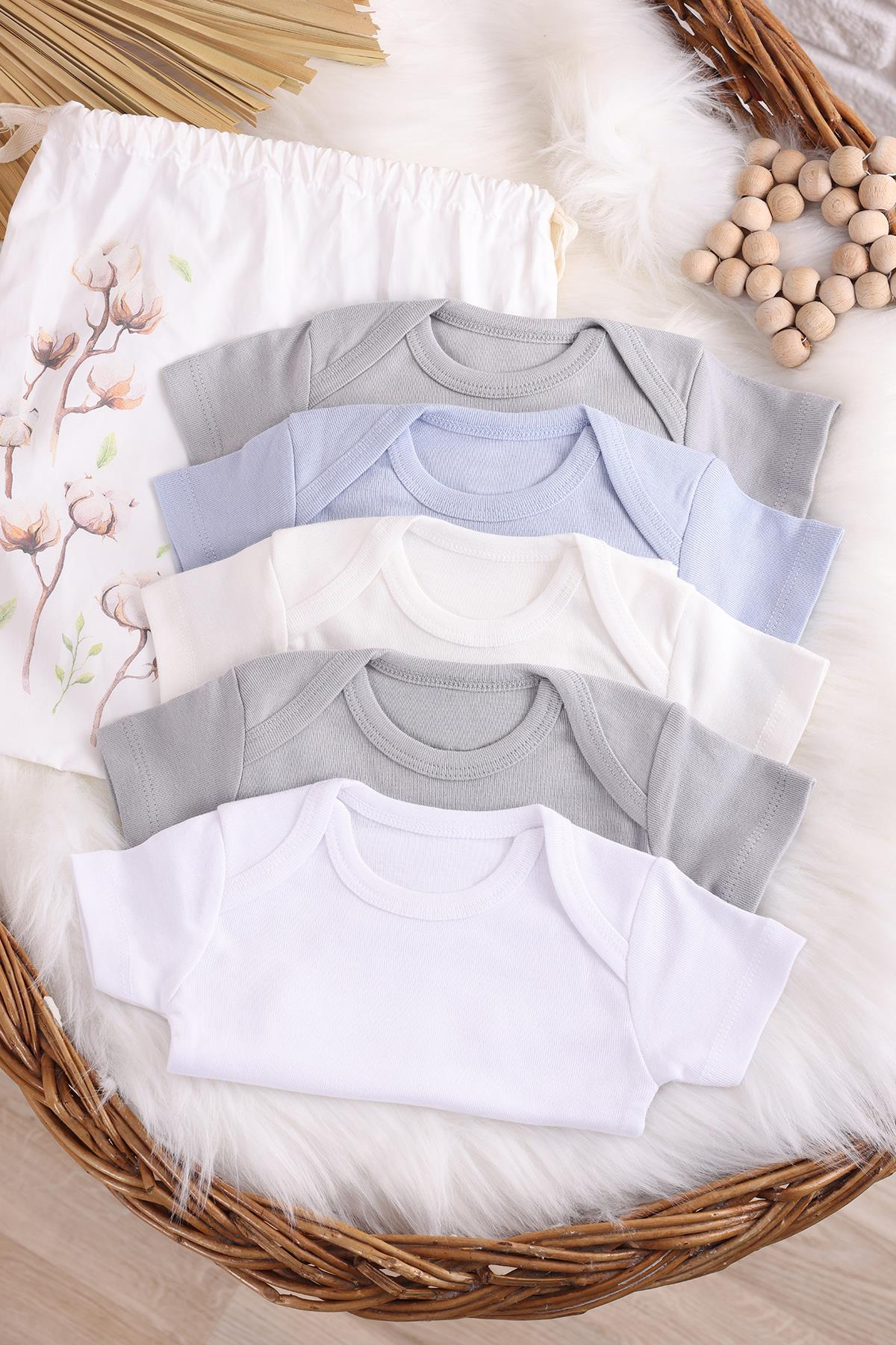 5'li Renkli Çıtçıtlı Erkek Bebek Zıbın (Çantalı) (KDBO1002)