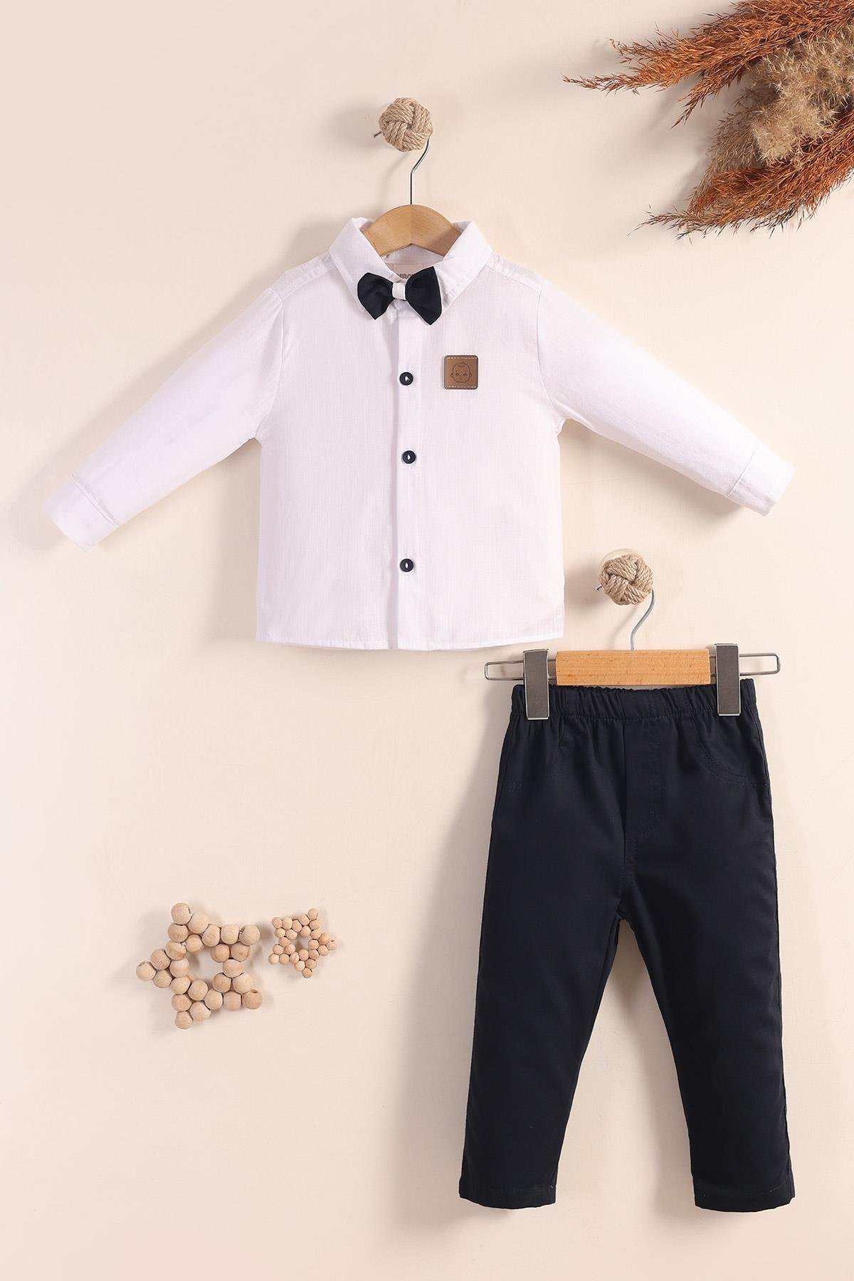 Beyaz papyonlu gömlek ve kumaş pantolondan oluşan 2'li erkek çocuk takımı
