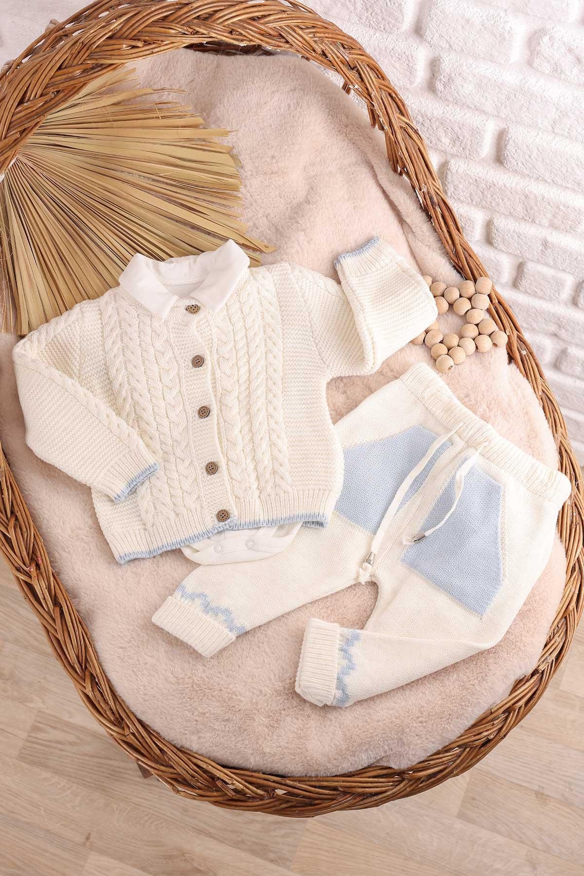 Ekru, 3'lü örme triko bebek takımı