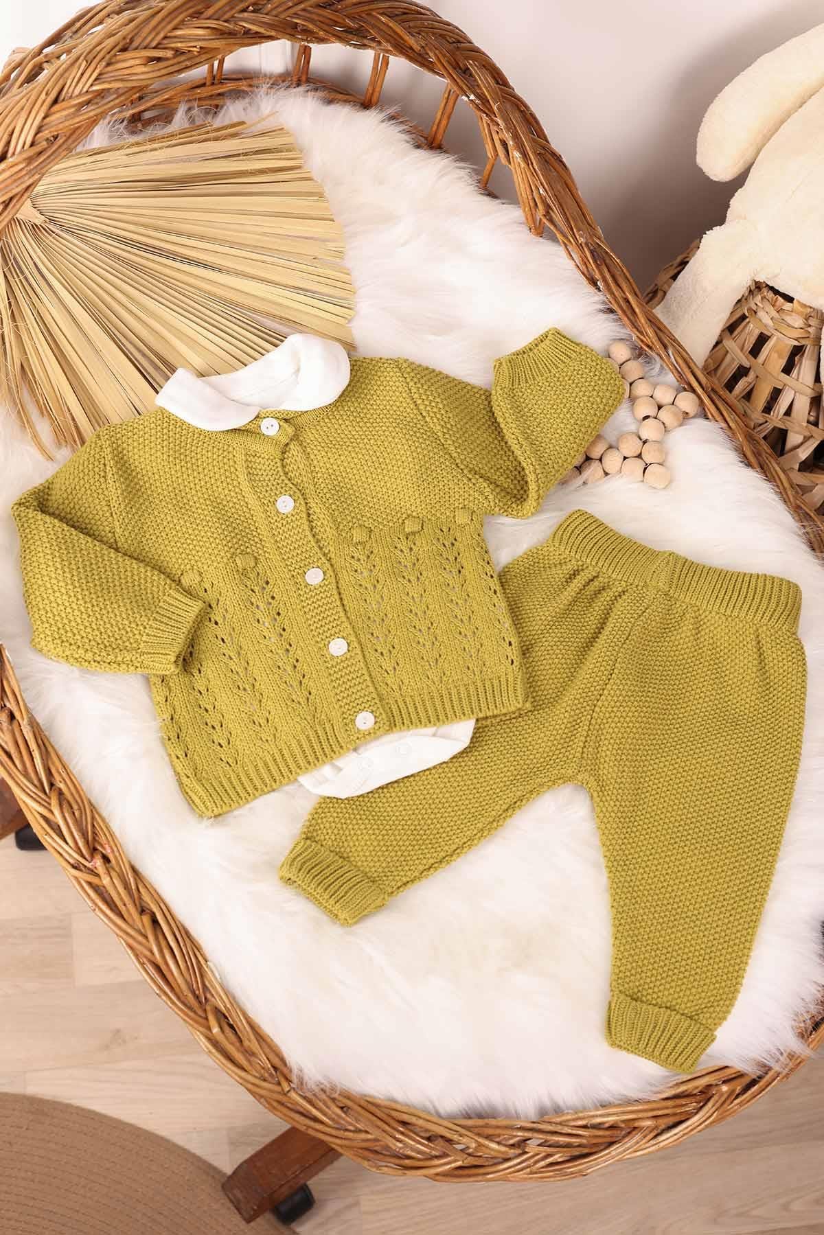 Fıstık yeşili, 3'lü triko unisex bebek takım