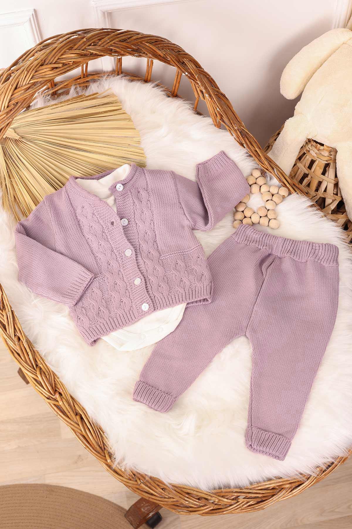 Lila rengi, 3'lü örme triko kız bebek takımı